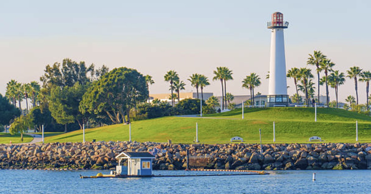 Enjoy the stunning waterfront along the Shoreline Park boardwalk in Long Beach. You can see the stunning ocean along the course, including views of the Queen Mary.